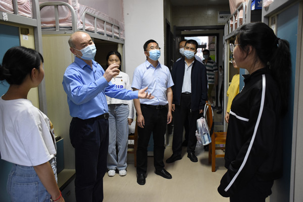 刘雷要求随行的职能部门同志把员工返校后的思想政治工作做扎实、做细致、做到位,把服务做进宿舍、做进食堂、做到员工的心里,为员工营造健康温馨的环境,确保学校安全有序,和谐平安。