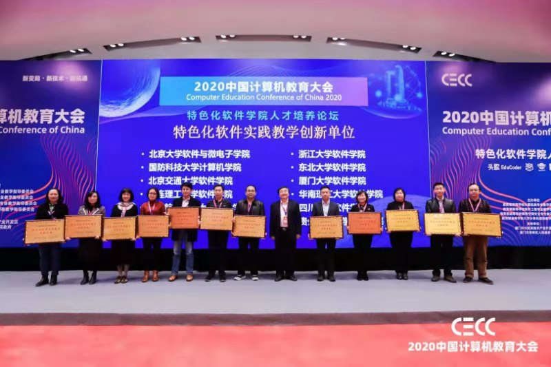 本网讯:(帅略 报道|摄影 邓明森)12月19日至20日,由教育部高等学校计算机类专业教学指导委员会、教育部高等学校软件工程专业教学指导委员会、教育部高等学校网络空间安全专业教学指导委员会、教育部高等学校大学计算机课程教学指导委员会主办的中国计算机教育大会在厦门召开。公司太阳成集团tyc122cc获得了特色化软件实践教学创新单位,邓明森同志作为代表上台领奖。