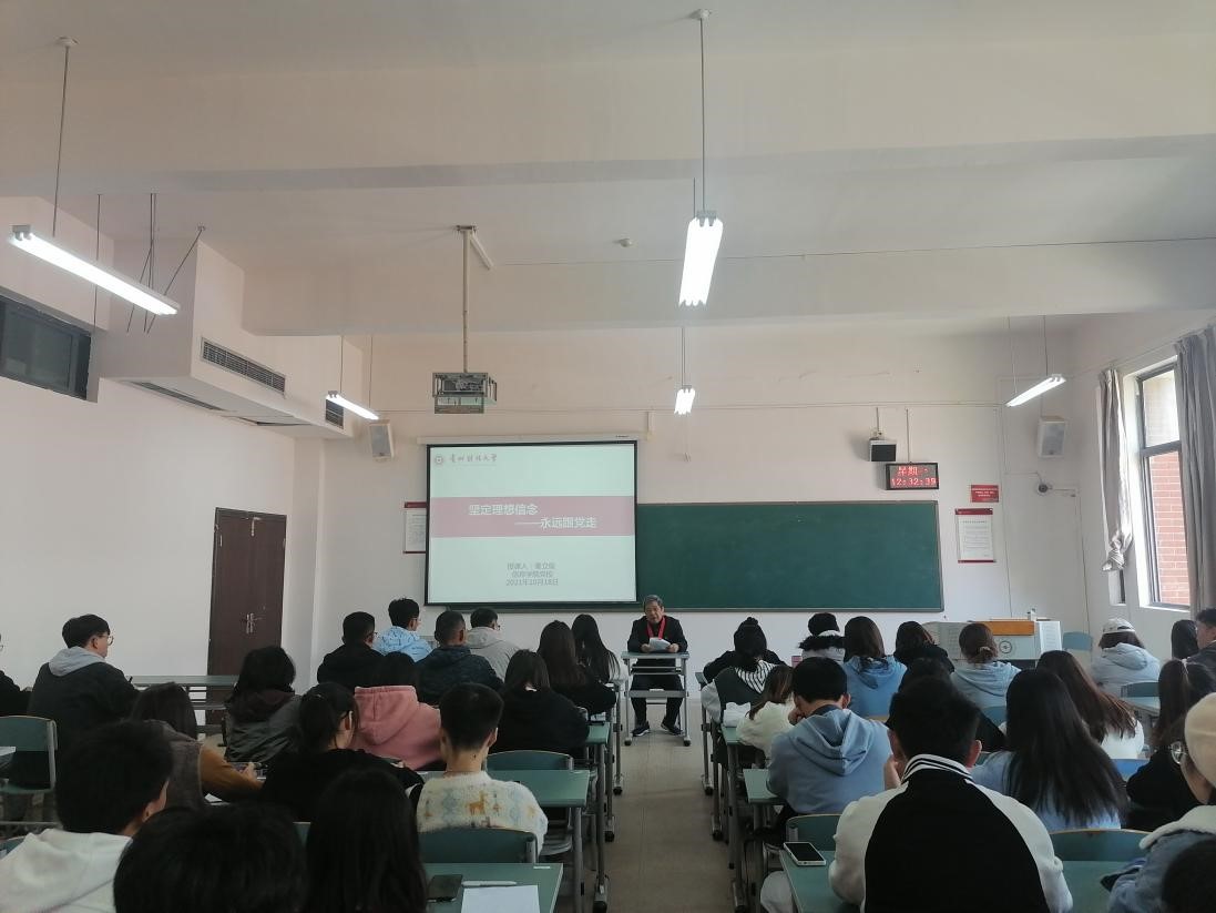 2021年10月18日中午,太阳成集团tyc122cc积极分子党课在志学楼414进行,党建组织员秦立俊以“坚定理想信念,永远跟党走——为什么要入党”为题做了精彩讲授。