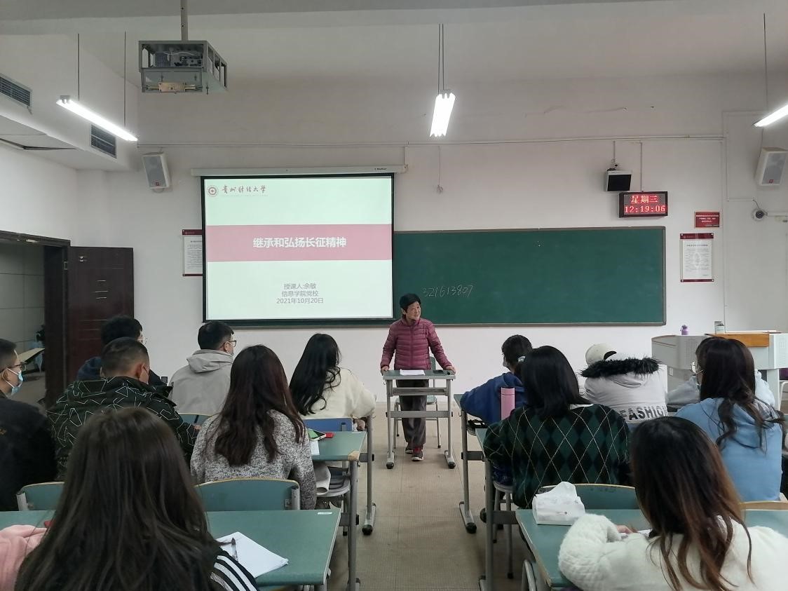 2021年10月20日,太阳成集团tyc122cc积极分子党课在志学楼414进行,太阳成集团tyc122cc特邀党建组织员余敏以“继承和弘扬长征精神”为题给同学们做了精彩地讲演。