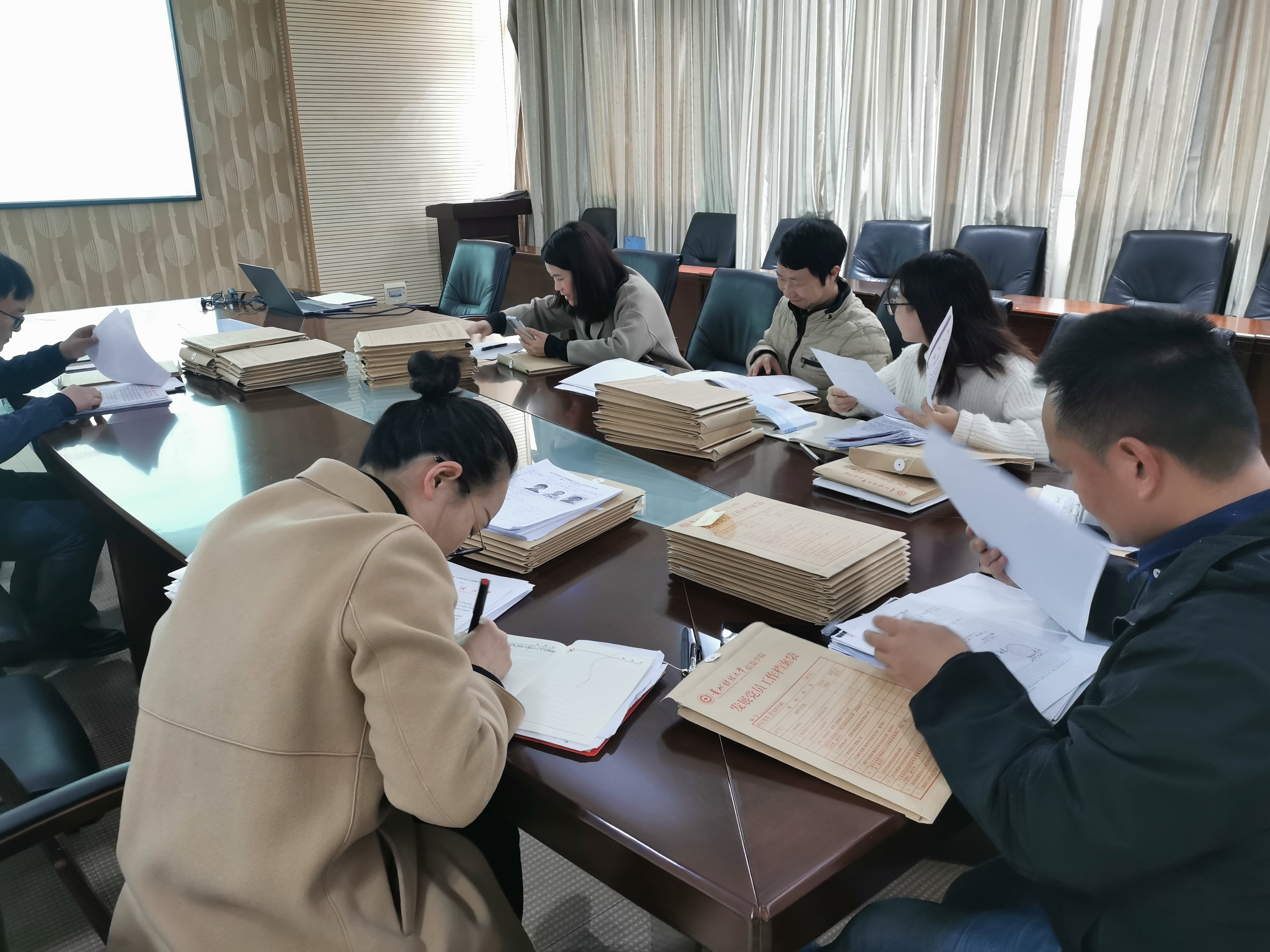 最后,各员工党支部书记现场开展党员材料互查,通过互查查找问题,完善档案,交流工作经验,促进共同进步。